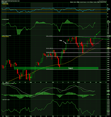 The ten day moving average of the ISE Sentiment Index, which measures opening long customer transactions to calculate bullish/bearish market direction is the highest it has been this year and although I haven't researched it may be the highest it's ever been. I have followed this sentiment indicator for a few years and generally speaking, a high reading has been predictive of rising equities. So this is giving us a very bullish signal moving into year end.